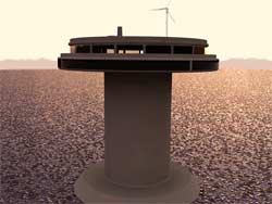 In essence, the seastead would consist of a reinforced concrete tube with external ballasts at the bottom that could be filled with air or water to raise or lower the living platform on top.